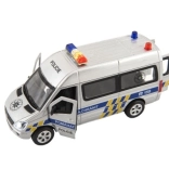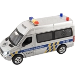 Robustné policajné autíčko z kovu s plastovými doplnkami poteší všetkých malých strážcov poriadku. Ponúka svetelné a zvukové efekty, spätné natiahnutie pre rýchly štart, otváracie dvere a dodáva sa s batériami v balení.