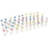 50 ks dopravných značiek (kartón, výška cca 5 cm), 50 ks plastových podstavcov, český a slovenský popis významov značiek
