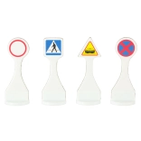 Široký výber najpoužívanejších značiek v rôznych tvaroch a farbách umožní deťom vytvárať skutočné dopravné situácie a učiť sa bezpečne hrou.