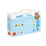 Táto jednoduchá náučná hra je ideálna na prvé učenie formou hry. Deti priraďujú malé a veľké zvieratko, skúmajú tvar, správne natočenie a vkladajú vyberateľné dieliky do zodpovedajúcich otvorov na doštičkách. Každý správne spárovaný pár posilňuje sebaistotu a chuť objavovať.