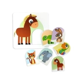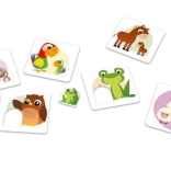 Sýte farby a rozkošné obrázky korytnačky, papagája, ovečky a ďalších zvieratiek podporujú sústredenie a radosť z hry.