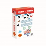 Hra školou – tiene je kreslená náučná hra, v ktorej deti hľadajú a skladajú dvojice tvorené tieňom a zodpovedajúcim farebným obrázkom. Zostavte všetkých 24 párov ako puzzle, spoznávajte tvary, pomenúvajte zvieratká a hudobné nástroje a rozprávajte sa o nich. Hra rastie s dieťaťom – od jednoduchého priraďovania až po zvedavé otázky a hľadanie súvislostí.