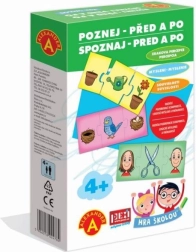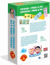 Hra školou – Spoznaj: Pred a po je šikovná pomôcka pre malých zvedavcov, ktorá formou hry učí rozpoznávať časovú postupnosť udalostí. Deti vyberajú z 36 rozložených dielikov a hľadajú trojice, ktoré k sebe patria, aby správne zoradili priebeh deja.