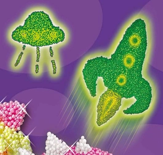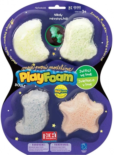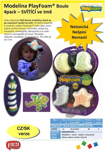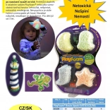 Tento balíček obsahuje modelínu v štyroch jemných, fosforeskujúcich farbách, ktoré svietia v tme. Brilantné pojivo zabezpečuje, že modelína drží pohromade, nevysychá a deti si s ňou môžu hrať znova a znova.
