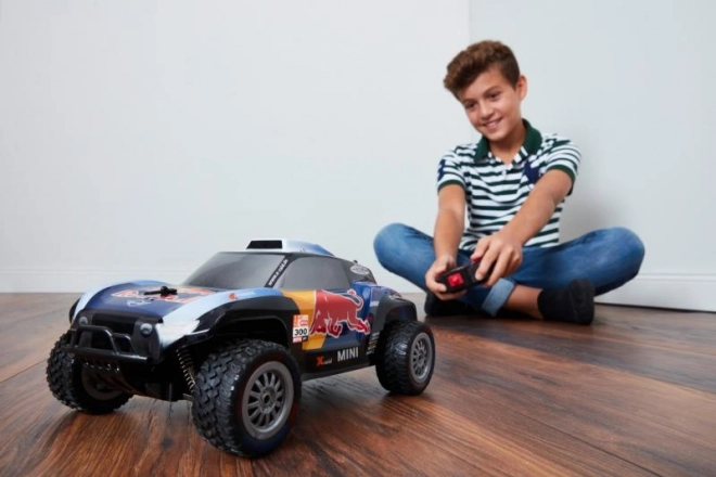 Štýlový RC model inšpirovaný pretekárskym špeciálom X-Raid MINI JCW Buggy s ikonickým RED BULL polepom ponúka svižnú a stabilnú jazdu. Vďaka modernej frekvencii 2,4 GHz si bez problémov zasúťažíte s kamarátmi na jednej trati – bez kríženia signálov a výpadkov.