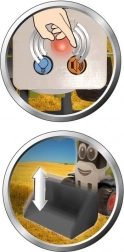 Tento rozkošný nakladač CLAAS Mini v zelenej farbe s čiernymi kolesami a červenými detailmi poteší najmenšie deti realistickými funkciami. Po stlačení tlačidla sa ozve zvuk motora a rozsvietia sa výstražné svetlá. Ručne ovládaná lyžica umožňuje jednoduché dvíhanie a spúšťanie, čo podporuje jemnú motoriku.