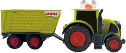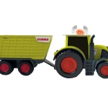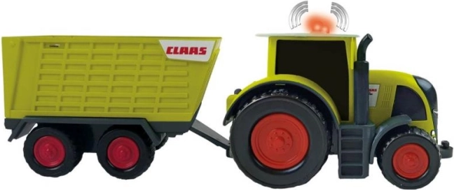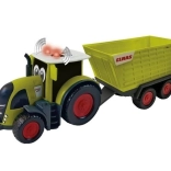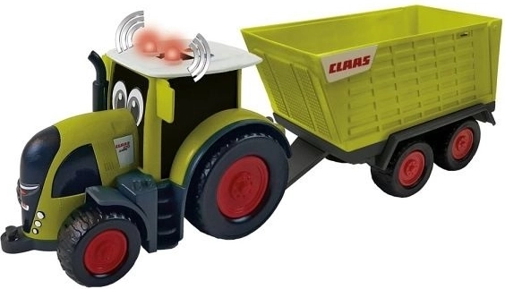 Traktor Claas s prívesom ponúka autentický zážitok z farmy pre malé deti. Hračka je vyrobená zo zeleného plastu s čiernymi a červenými prvkami a jej dĺžka je približne 28 cm. Vďaka milým očiam, ktoré traktor zdobia, prináša radosť a úsmev na tvárach detí. Je určená pre deti od 12 mesiacov a je navrhnutá s ohľadom na detskú bezpečnosť, so zaoblenými rohmi a hranami.