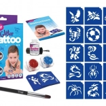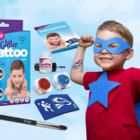 Väčšie sady obsahujú viac nástrojov: Pohyblivé oči/samolepiace kamienky: Hotový vzor môžete prizdobiť. Naneste malé množstvo lepidla na samolepiace kamienky a pritlačte ho na pokožku.