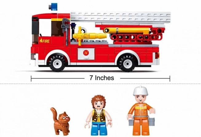 - Kocky, 2 figúrky, hasičské vozidlo s rebríkom, doplnky, návod