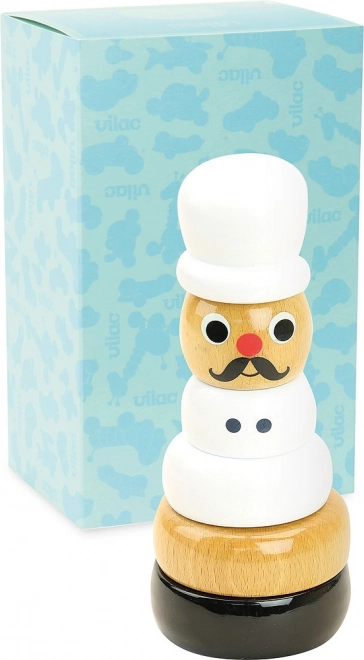 Objavte hravú drevenú nasadzovaciu vežu VILAC v tvare kuchára, ktorá rozvíja detskú zručnosť a fantáziu. Vyrobená vo Francúzsku z kvalitného lakovaného dreva, s nadčasovým retro dizajnom od Ingely P. Arrhenius. Ideálny darček pre malých kuchárov od 12 mesiacov. Jemná motorika, koordinácia oko–ruka a bezpečné materiály v jednom krásnom doplnku detskej izby.