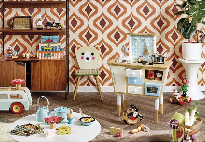 Táto štýlová nasadzovacia veža kuchár od značky VILAC spája estetiku a vzdelávaciu hodnotu. Deti skladajú drevené diely na tyčku, čím si trénujú jemnú motoriku, logiku a trpezlivosť. Retro vzhľad podľa švédskej ilustrátorky Ingely P. Arrhenius z nej robí aj krásny dekoratívny prvok.