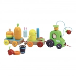 • Posuvné korálky: Traktor má korálky na drôte v tvare ovocia, ktoré podporujú motorické zručnosti.