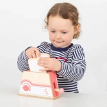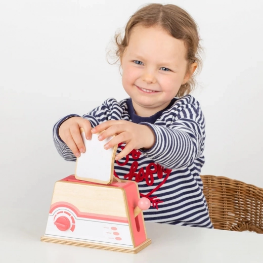 Drevený hriankovač Bigjigs Toys v príjemnej ružovej kombinácii prinesie do detskej kuchynky veľa radosti. Vďaka otočnému voliču a funkčnej páčke deti ľahko napodobnia skutočné opekanie chleba, čo podporuje napodobňovaciu hru, jemnú motoriku aj fantáziu.
