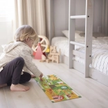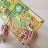 Zábavné a vzdelávacie puzzle pre najmenších. Poskladajte 10 veľkých dielikov a vydajte sa prstom po bludisku naprieč farmou. Deti pri hre rozvíjajú jemnú motoriku, sústredenie a postreh, keď hľadajú 20 rôznych predmetov na obrázku. Puzzle je vyrobené z recyklovaného papiera a potlačené farbami na rastlinnej báze, spĺňa prísne bezpečnostné štandardy a je ideálne pre deti od 2 rokov.