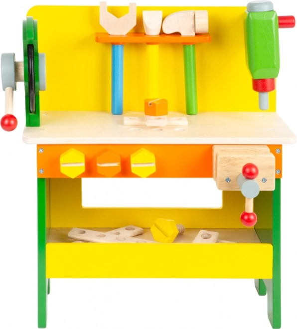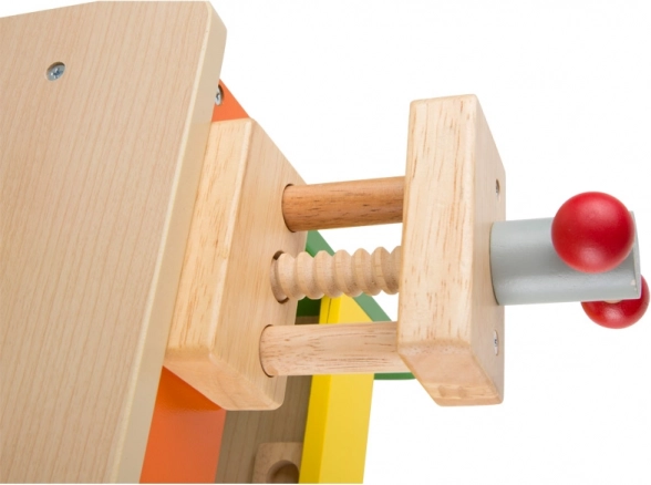 Pevná konštrukcia z kvalitného dreva s farebným lakom zaručuje stabilitu a dlhú životnosť. Ponk je navrhnutý s dôrazom na bezpečnosť a zábavné učenie – ideálna hračka na rolové hry, rozvoj technického myslenia a predstavivosti.