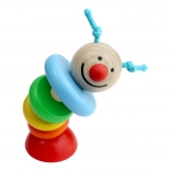 Táto farebná drevená húsenka je ideálna prvá hračka pre najmenších. Vďaka prepojeniu dielikov na gumičke sa ľahko ohýba, krúti a vracia späť, čo deti motivuje k aktívnemu skúmaniu a tréningu koordinácie rúk a očí. Kompaktná veľkosť skvele padne do detskej rúčky.