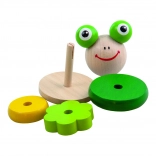 Hojdacia pyramída žabáková je skvelá drevená hračka na rozvoj motoriky a predstavivosti malých detí. Skladá sa zo 4 navliekacích dielov a jedného základného dreveného dielu s tyčkou, vďaka čomu zábavne poskakuje a točí sa.