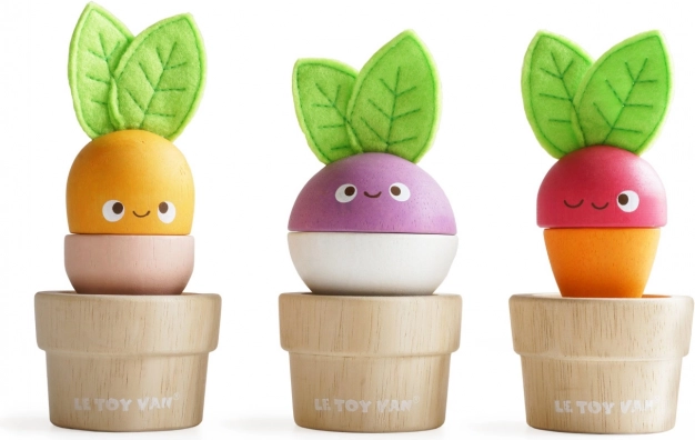 Rozkošná sada drevených kvetináčikov so zeleninou od LE TOY VAN podporuje jemnú motoriku, koordináciu ruka–oko aj predstavivosť. Deti môžu mixovať a skladať jednotlivé diely do mrkvy, reďkovky a repy alebo vytvárať vlastné kombinácie. Hračka je vyrobená z udržateľného dreva, má plstené lístky a je ručne domalovaná netoxickými farbami na vodnej báze.