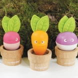 - 3 drevené kvetináčiky, zeleniny s vymeniteľnými dielmi (mrkva, reďkovka, repa) s plstenými lístkami