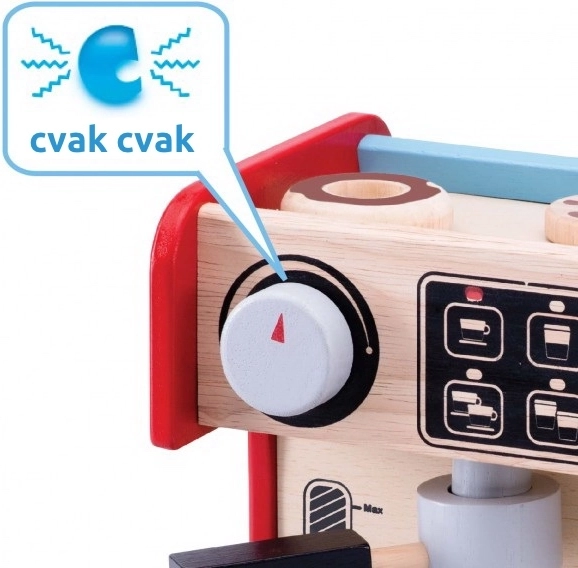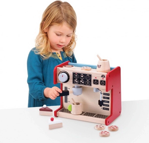 Deti si s týmto kávovarom môžu vyskúšať, aké je to byť baristom. Súprava obsahuje kávovar s odnímateľnou pákou a pohyblivým dávkovačom mlieka. Všetko je doplnené o ovládací displej s otočnými cvakajúcimi gombíkmi a maľovanými tlačidlami.