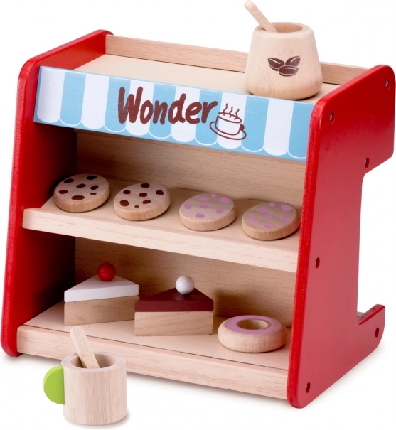 Dá sa v policiach vystaviť dezerty dodávané so súpravou. Kávovar tak pôsobí dojmom reálneho kávového zariadenia.