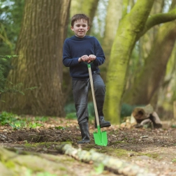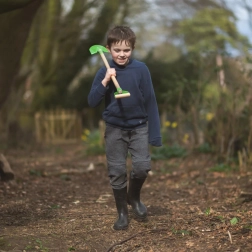 Hladká, robustná násada z prírodného dreva sa pohodlne drží a pomáha deťom kopať s istotou a menšou únavou.
