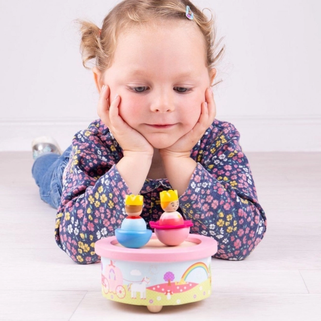 Táto krásna drevená hracia skrinka je vybavená dvomi figúrkami, ktoré sa otáčajú a kolíšu do rytmu uspávanky. Figúrky sú pripevnené pomocou neviditeľných magnetov, čo umožňuje ich jednoduché odňatie a samostatnú hru.
