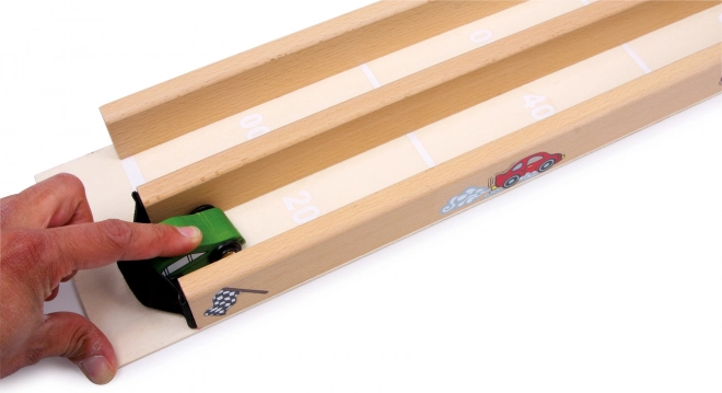 Táto elegantná drevená závodná dráha je skvelým spôsobom, ako zapojiť deti do interaktívnej a zábavnej hry. Obsahuje dve dráhy, ktoré sú zdobené farebnými ilustráciami, čo prináša vizuálny aj herný zážitok.