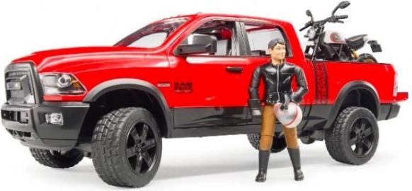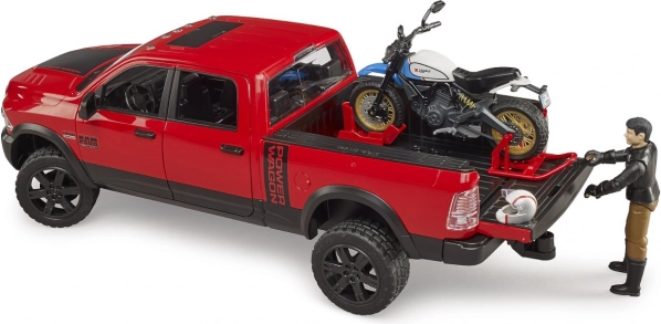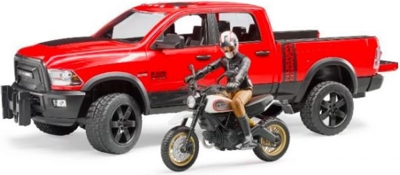 Bruder terénne auto Ram s motocyklom Ducati Scrambler a figúrkou