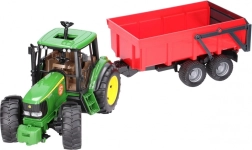 Súprava traktor JOHN DEERE s funkčnou sklápačkou prináša deťom realistický zážitok z farmárskych prác. Traktor je detailne spracovaný, má otváraciu kapotu, riaditeľnú prednú nápravu cez predĺžený volant v kabíne a výrazné profilované pneumatiky pre verný vzhľad aj stopy.