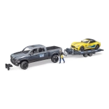 - Terénny pick-up RAM, príves, žlté športové auto, figúrka vodiča, prídavný volant