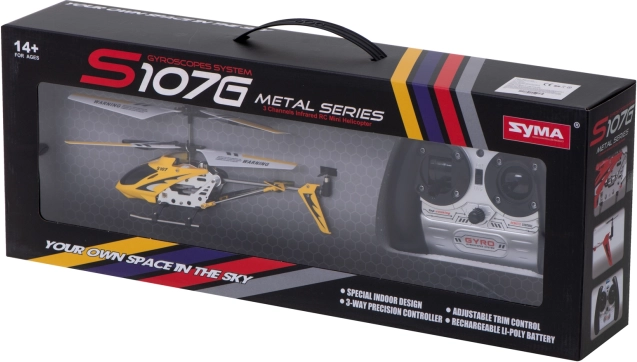 Ľahký a odolný RC vrtuľník Syma S107G so stabilizáciou GYRO je ideálny pre začiatočníkov aj pokročilých. Kovový rám, koaxiálny rotor, tri nezávislé motory a pružné listy zaisťujú stabilný a bezpečný let. Let až 7–10 minút, nabíjanie cez USB, dosah riadenia do 15 m.