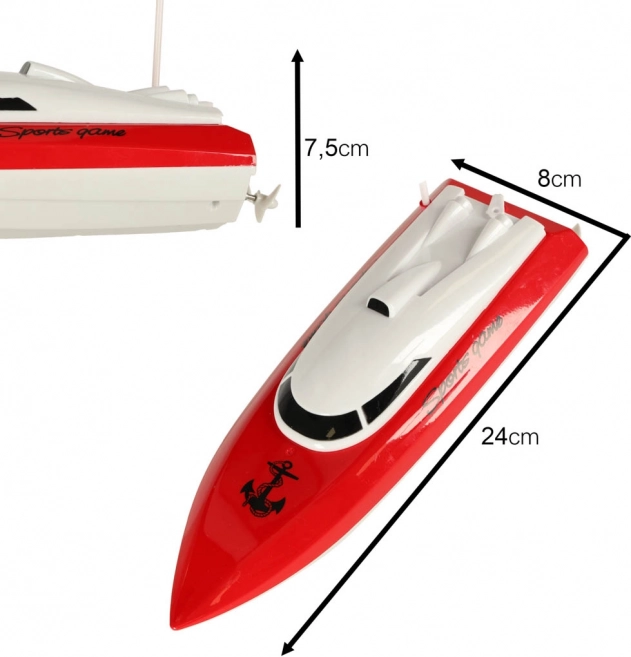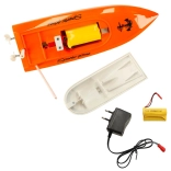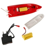 Tento malý, ale svižný RC čln ponúka intuitívne ovládanie a stabilnú jazdu na pokojnej vodnej hladine. Vďaka odolnému plastovému trupu a premyslenej aerodynamike je model skvelo ovládateľný a vhodný pre deti. Napájanie zabezpečuje akumulátor Ni‑Cd 3,6 V 500 mAh, ktorý poskytuje približne 7–8 minút jazdy na jedno nabitie.