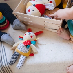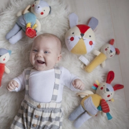 Zajačik slúži ako hrkalka, hryzátko i maznavý plyšák pre deti, čo z neho robí veľmi univerzálnu hračku.