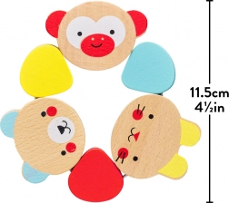 Drevené hryzátko je navrhnuté tak, aby vyhovovalo malým ručičkám, ktoré si užívajú bezpečné poznávanie rôznych textúr a tvarov. Je perfektné pri raste prvých zúbkov, a to vďaka svojim prírodným materiálom a vodou riediteľným farbám, čo zaisťuje jeho bezpečnosť pri používaní.