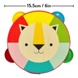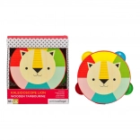 Táto kvalitná drevená tamburína z topoľovej preglejky poteší začínajúcich hudobníkov aj ich rodičov. Ľahké a pohodlné držanie, bezpečné rastlinné farby a lak na vodnej báze zabezpečujú bezstarostnú hru. Veselý leví motív a výrazné farby podporujú vnímanie rytmu, farieb aj motorické zručnosti.