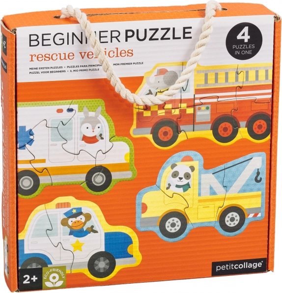 Roztomilá sada štyroch skladačiek s motívmi záchranných vozidiel poteší malých staviteľov už od 2 rokov. Každé mini puzzle má inú náročnosť (3–6 dielikov), takže deti postupujú krok za krokom. Vyrobené z recyklovanej lepenky a potlačené rastlinnými atramentmi. Súčasťou je praktický úložný box na jednoduché prenášanie a ukladanie.