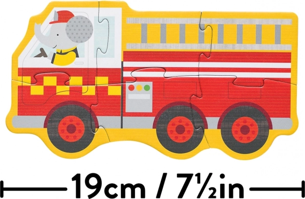 Zoznámte deti so svetom záchranárov pomocou milých ilustrácií – králik šoféruje sanitku, opica policajné auto, slon hasičské vozidlo a panda odťahovku. Rôzna náročnosť skladačiek (3, 4, 5 a 6 dielikov) podporuje postupný rozvoj zručností, trpezlivosť aj radosť z úspechu.