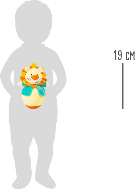 Tento hebký a farebný lev očarí deti aj rodičov. Vďaka chytrej vypuklej základni sa po ťuknutí rozkošne kýva zo strany na stranu a opäť sa postaví, čo motivuje deti k ďalšiemu skúmaniu a podporuje ich hrubú aj jemnú motoriku. Integrovaná rolnička vytvára príjemné zvukové podnety a podporuje rozvoj sluchu.