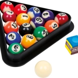 - Sada obsahuje: 2 tága, biliardové gule, trojuholník a kriedu.