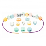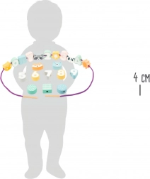 Drevené zakončenie šnúrky uľahčuje navliekanie a posilňuje koordináciu ruka–oko aj obratnosť prstov.
