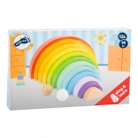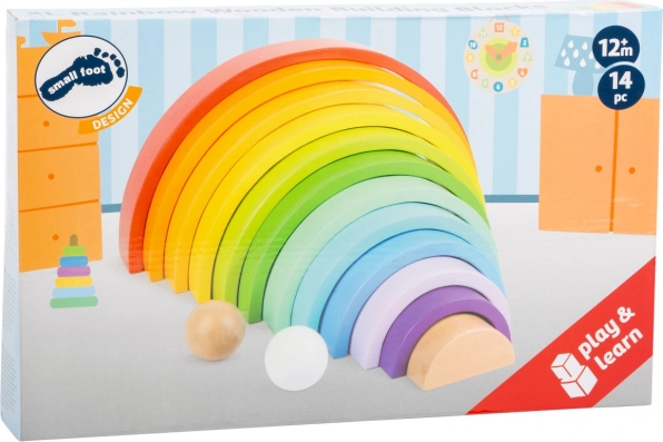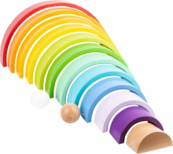 14 farebných oblúkov možno skladať do dúhy, mostov, tunelov aj veží. Deti si trénujú rovnováhu a predstavivosť pri každej novej kombinácii.