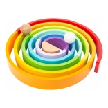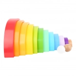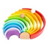 Dúha je vyrobená z kvalitného, odolného dreva s hladkým povrchom a sýtymi farbami. Je skvelým doplnkom k otvorenému a zmysluplnému hraniu v duchu Montessori, ktoré rešpektuje tempo dieťaťa a podnecuje samostatnosť.