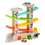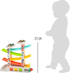 Závodná dráha obsahuje rôzne úrovne a farebné autíčka, čo zabezpečuje zábavné a vzdelávacie hranie.