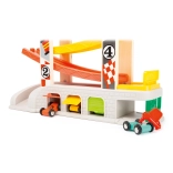 Predstavujeme závodnú dráhu, ktorá zaručuje hodiny zábavy pre vaše deti. Táto sada obsahuje nielen závodnú dráhu, ale aj tri garáže a tankovací box, čo umožňuje simulovať rôzne scenáre a hry. Vďaka svojej jedinečnej farebnosti dráha ľahko upúta pozornosť a podnecuje detskú zvedavosť. Robustná konštrukcia kombinuje plastové a atraktívne potlačené drevené diely, čo zaisťuje dlhodobú odolnosť.