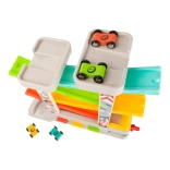 Dráha je navrhnutá tak, aby rozvíjala zručnosti imitačného hrania a jemné motoriky, zatiaľ čo deti závodia so štyrmi rôznofarebnými autíčkami. Navyše, vďaka praktickému systému parkovania a skladovania môžu malí závodníci po závode svoje autíčka jednoducho upratať.