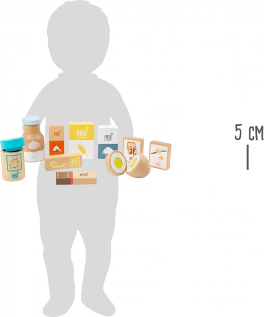 Rozvíjajte fantáziu malých pekárov s touto 10-dielnou sadou drevených prísad od small foot. Obsahuje všetko potrebné na hranie sa na pečenie: múku, cukor, smotanu, soľ, kypriaci prášok, vanilínový cukor aj rozložiteľné vajíčko. Skvele doplní detskú kuchynku, podporuje hraní rolí a rozvoj jemnej motoriky.