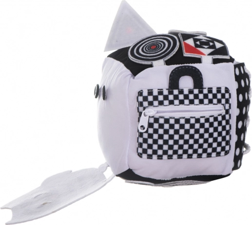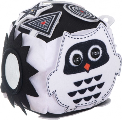 Táto mäkká senzorická kocka urobí každý deň vášho malého objaviteľa úžasným. Kontrastné vzory a čiernobiele farby stimulujú zrak, zatiaľ čo rôzne textúry pomáhajú v rozvoji hmatu. Kocka je vybavená hrkálkou a praskavými prvkami, ktoré zaujmú sluch aj tých najmenších.
