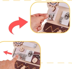 - Rôzne aktivity od jednoduchých úloh ako presúvanie guľôčok na počítadle až po zložitejšie ako otváranie zámok kľúčom.