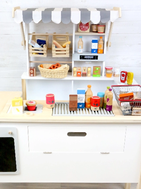 Perfektný doplnok k detskej kuchynke či obchodíku: deti môžu „predávať“, „servírovať“ aj „ochutnávať“, rozvíjať slovnú zásobu, sociálne zručnosti a fantáziu. Kvalitné drevené prevedenie s hladkými hranami zabezpečuje dlhú životnosť aj bezpečné používanie.
